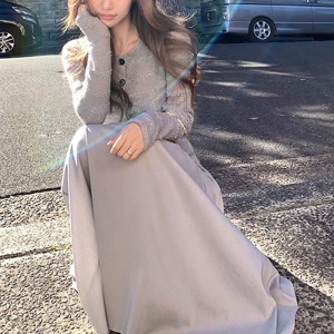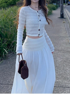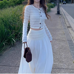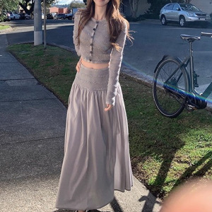 2025秋季新款条纹针织上衣长半裙休闲两件套