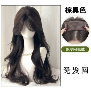 【少女和书】不用戴发网免打理中分八字刘海长卷发棕黑色补发片