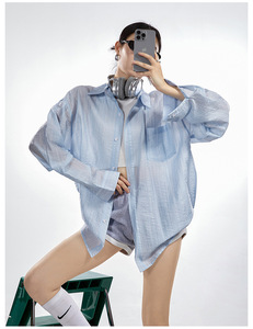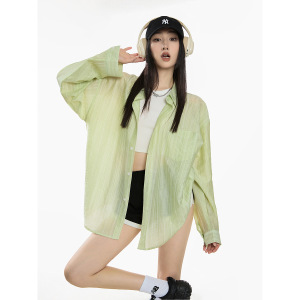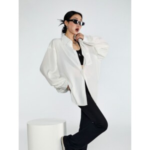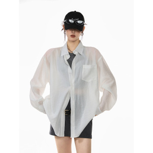 ICH MODE 美式物理白色衬衫女夏季宽松防晒罩衫衬衣外套上衣薄款