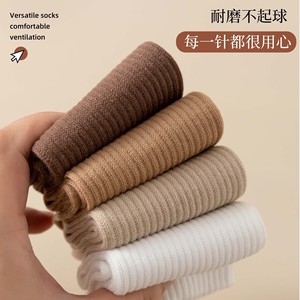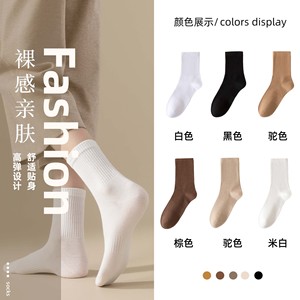 袜子女秋冬中筒袜纯色防臭吸汗无骨棉袜女士高橡筋堆堆袜女袜批发