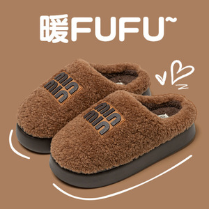 月子鞋女2025新款秋冬室内家居踩屎感厚底毛绒保暖防滑情侣棉拖鞋