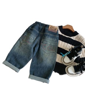 男童春秋款口袋重工刺绣潮牌牛仔裤男女童宝宝休闲裤儿童直筒裤