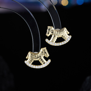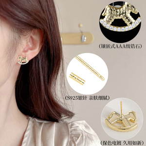 小众设计感碎冰冰摇摇木马简约动物耳钉s925银针轻奢气质个性耳环
