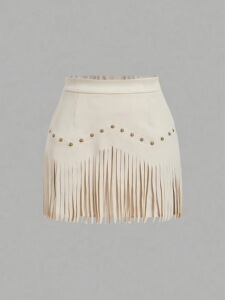 2025女士复古铆钉流苏仿麂皮绒A字裙