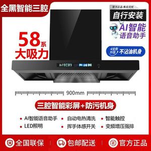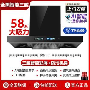 全国联保+上门安装-彩屏90cm语音操控防污全黑+三腔猛吸推荐