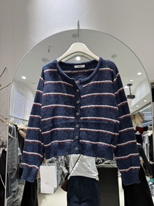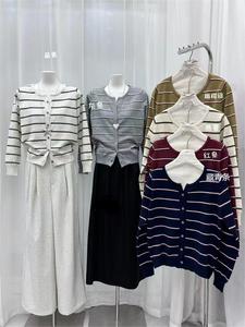 2025秋新款韩版宽松显瘦圆领条纹针织开衫女百搭毛衣外套彩点上衣