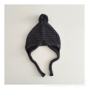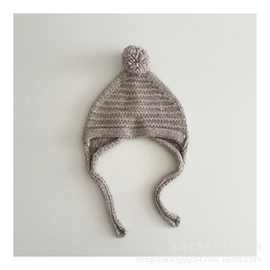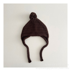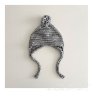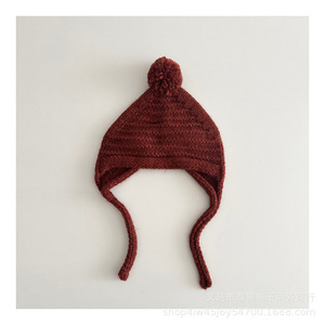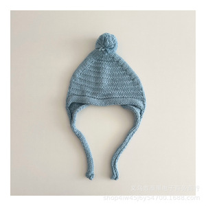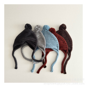 日韩儿童冬季新款素色毛线针织护耳帽男女童简约毛球保暖套头帽潮