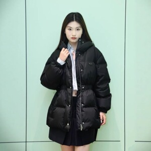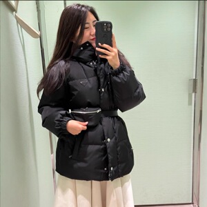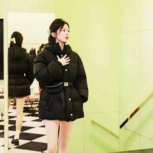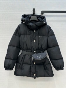 2025冬季PD新款修身腰包松紧腰装饰拉链连帽休闲棉服夹克外套潮流