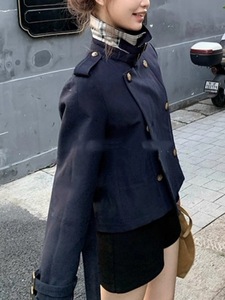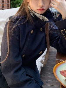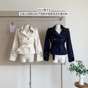 「北川景子」正肩立领英伦风/不规则中短款风衣外套女秋
