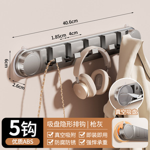 枪灰-隐形挂钩46.5cm6钩【吸盘式】