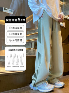 NASA侧三条杠条纹男士卫裤春秋新款美式宽松运动垂感直筒休闲长裤