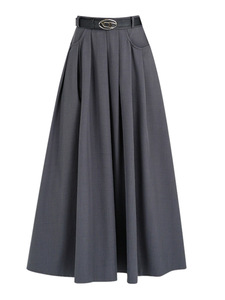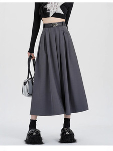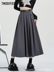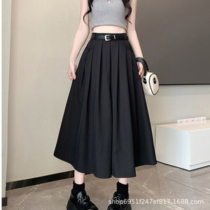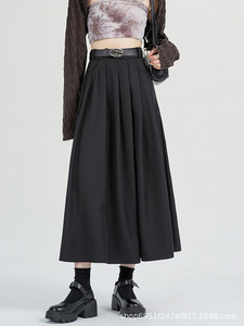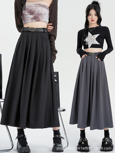 2025新款秋冬高腰修身A字显瘦伞形百褶裙中长款显瘦设计感松紧腰