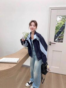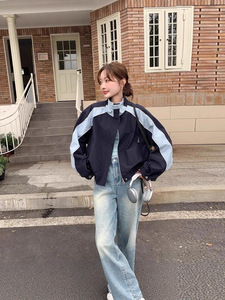 胖mm韩版2025秋季美拉德撞色立领外套休闲风百搭新款夹克女