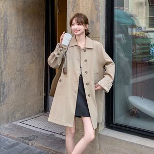 小个子韩版蕾丝撞色卡其色风衣外套女2025春秋新款单排扣休闲大衣