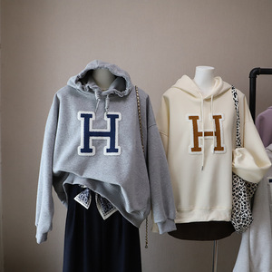 [比正]2025秋冬新款韩版时尚连帽字母宽松显瘦休闲百搭卫衣女5034