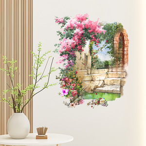 跨境绿植窗户墙贴装饰风景贴画自粘壁纸餐厅卧室风景背景墙贴装饰