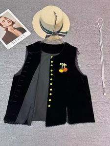 批发中式丝绒马甲背心女2025秋季新款气质新中式蕾丝花边上衣马甲