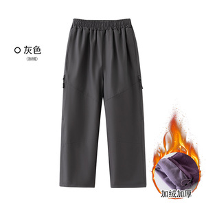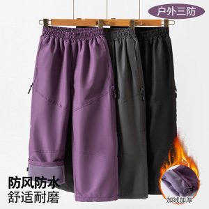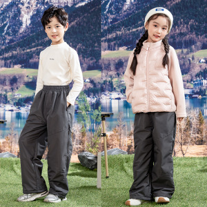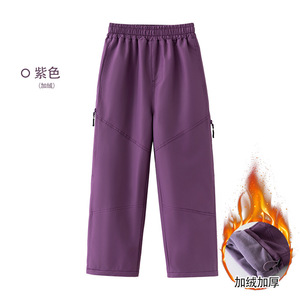 儿童登山冲锋裤秋冬季加绒加厚防水休闲男童运动裤宽松女童阔腿裤