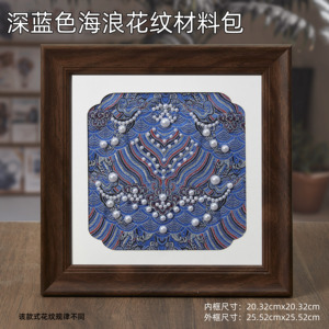 深蓝色海浪花纹宋锦珍珠画材料包—黑色相框