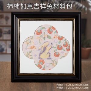 粉红色敦煌飞兔宋锦珍珠画材料包—黑色相框
