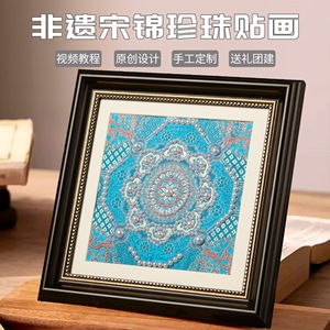非遗宋锦珍珠画diy材料包新中式节日装饰画团建暖场礼物