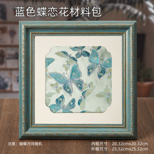 湖蓝色 蓝色蝶恋花纹—黑色相框
