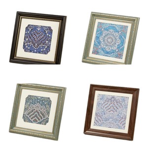 深蓝色八达藻井纹宋锦珍珠画材料包—黑色相框
