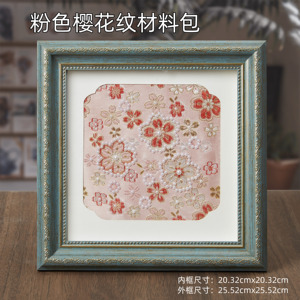 粉色樱花纹宋锦珍珠画材料包—黑色相框