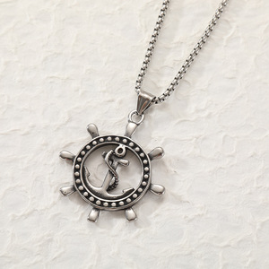 不锈钢欧美个性复古船锚轮盘首饰饰品男女朋克钛钢吊坠项链