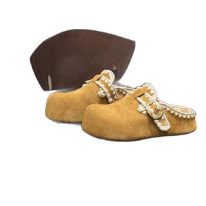 厚底休闲编织百搭一脚蹬2025秋季新款外穿包头皮带扣时尚勃肯拖鞋