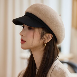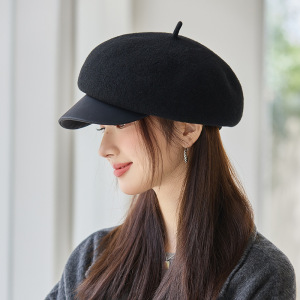 秋冬新款女百搭英伦风鸭舌贝雷帽户外保暖画家帽韩系大头围报童帽