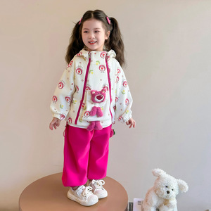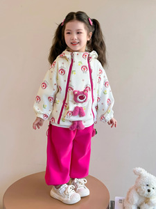 女童草莓熊卫衣套装2025新款春秋款洋气休闲运动两件套儿童卡通