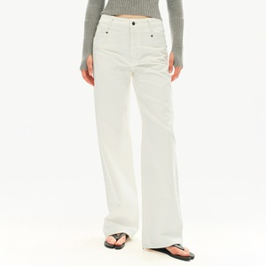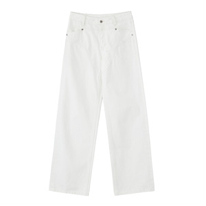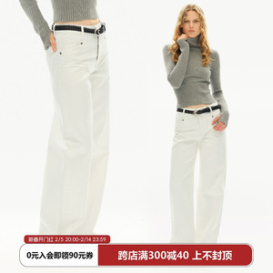 SMIIILE红边赤耳白色直筒牛仔裤宽松中低腰长裤女春秋裤子