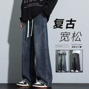 美式复古牛仔裤男生潮牌春秋新款男士直筒宽松阔腿休闲长裤子夏装