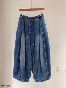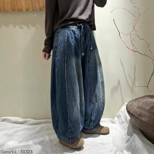 新款复古双层南瓜牛仔裤女设计感慵懒宽松高腰灯笼阔腿裤子