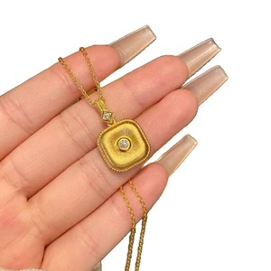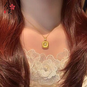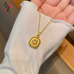 沙金饰品福运平安扣方形吊坠项链女款仿真金小众轻奢高级感颈链