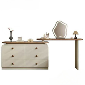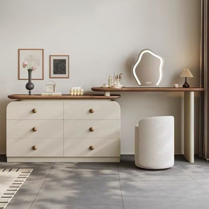 美式梳妆台卧室收纳储物柜化妆桌一体奶油简约现代卧室床尾化妆台