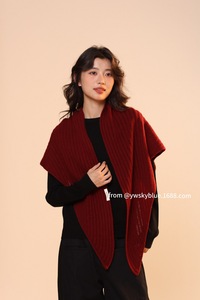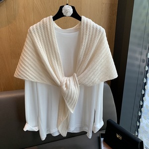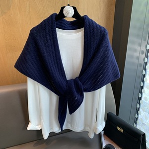 100%全羊毛镂空针织三角披肩女秋季新款时尚叠穿坎肩多功能围巾女