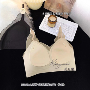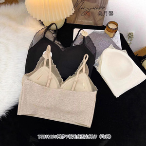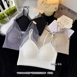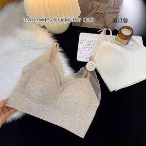 美月馨555809 螺纹棉纯欲蕾丝网纱V领固定杯裹胸无痕一字美背内衣
