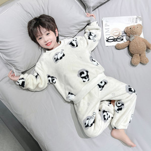 宝宝睡衣秋冬款法兰绒男孩2025新款男童冬季珊瑚绒男宝家居服儿童
