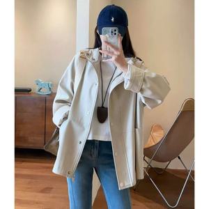 高品质天丝棉廓形显瘦小个子短款连帽风衣夹克外套25秋9572#
