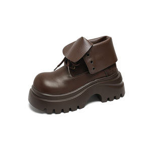 小个子内增高马丁靴女2025年秋冬新款厚底靴子百搭英伦风系带短靴