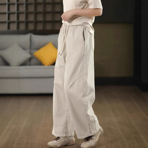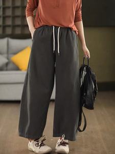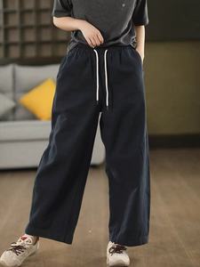 秋季新款 复古棉系带显瘦弯刀裤宽松镰刀裤文艺显瘦休闲长裤2630