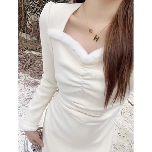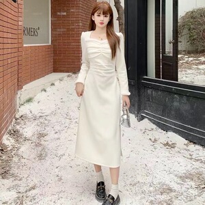 大码秋冬连衣裙气质褶皱遮肉时尚中长裙新款百搭温柔初恋裙设计感