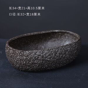 大号长条花盆陶瓷鱼缸古法养鱼缸铜钱草花长方形盆仿石头厂家一件