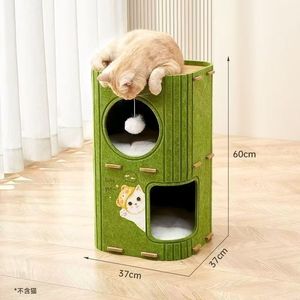 多层树洞猫窝毛毡板猫爬架猫咪树洞窝:冬季保暖双层封闭式猫屋