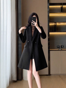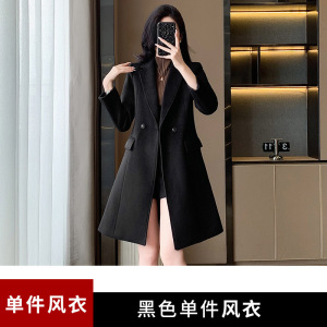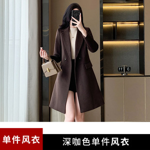 风衣女款2025新款超火爆款酒红色修身中长款高级感西装外套女春秋