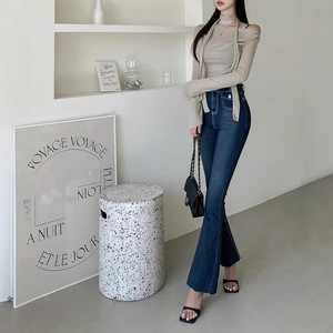 自带丰胯垫高腰显瘦提臀显瘦微喇牛仔裤复古水洗磨白掐腰牛仔裤女