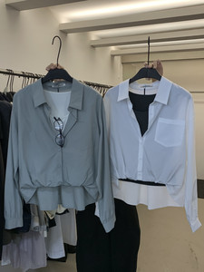 【MISS密思家】撞色背心简约气质休闲下摆褶皱假两件衬衫89027