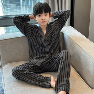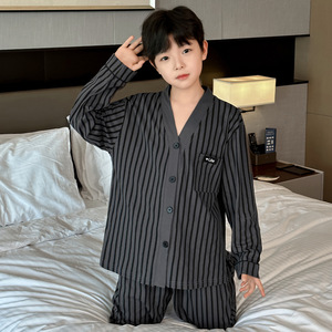 2025新款男童睡衣春秋款儿童长袖宽松家居服中大童初中生条纹睡衣